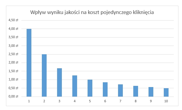 Przy poprawie wyniku jakości z 1 do 5, koszt za jedno kliknięcie zmniejszy się o 3 zł.