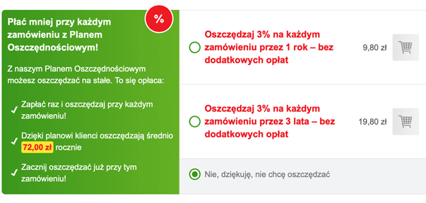 W ten sposób działa np. internetowy sklep zoologiczny, który zachęca do skorzystania z Planu Oszczędnościowego: