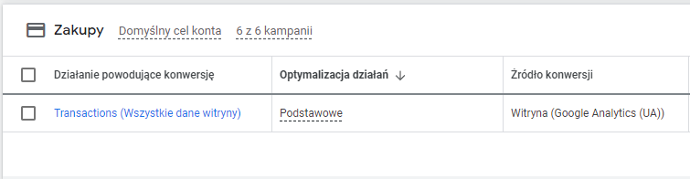 Dzięki temu znana była wartość i ilość transakcji dokonywanych w sklepie po interakcji z reklamą Google Ads.