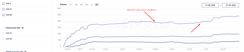 W zakresie pozycjonowania współpracujemy z klientem od maja 2021 roku.