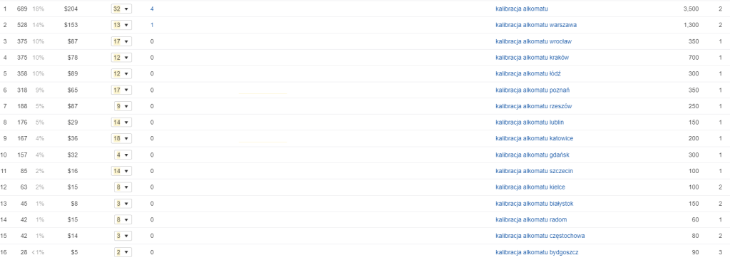 Dodatkowo strategia nastawiona była również na pozycjonowanie lokalne związane z kalibracją alkomatów – zaplanowaliśmy wypozycjonowanie jak największej liczby miast w wynikach organicznych.