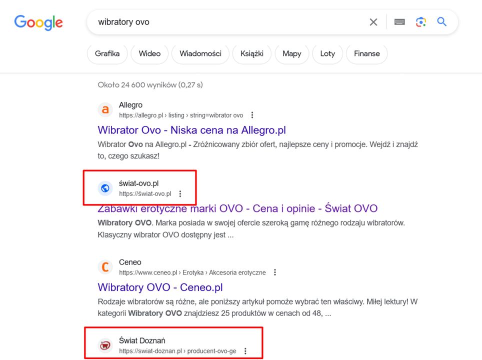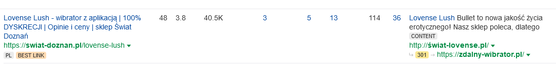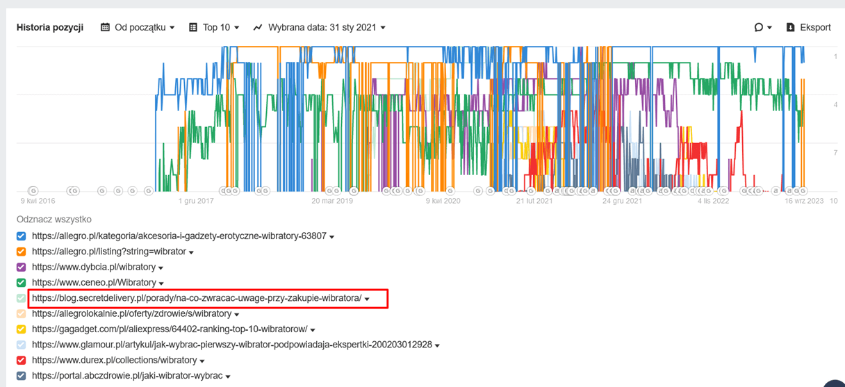 Niestety, gdy okazywało się, że strona została mocno identyfikowana z treścią erotyczną, to również miało swoje odbicie na widoczności bloga w obrębie tej domeny. Widać to także wśród konkurencyjnych sklepów, które prowadzą bloga w oparciu o bardzo dobrej jakości content: