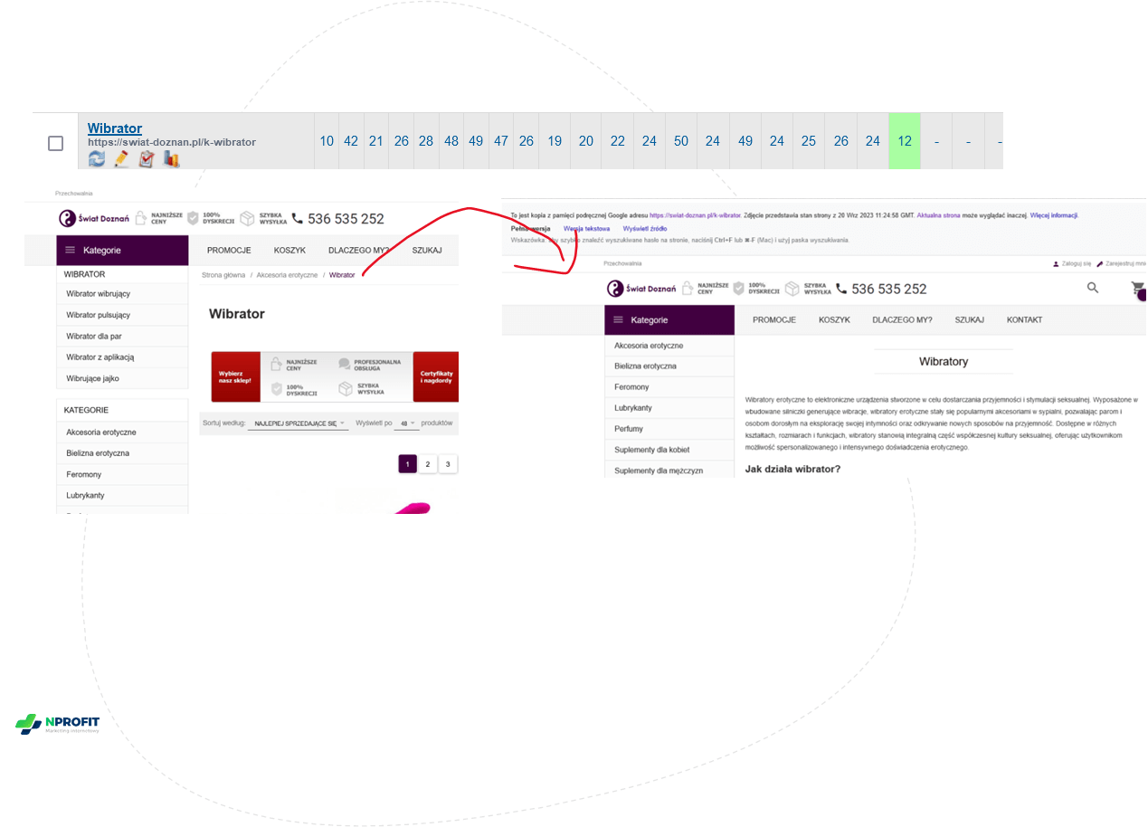 O ile case study jest bardzo atrakcyjne wizerunkowo, gdyż udało nam się zająć TOP 1 na kilka z bardziej konkurencyjnych fraz w Google (oczywiście subiektywnie), tj. „sex shop”, „sexshop” czy „sklep erotyczny”, tak z naszej perspektywy jego prawdziwą wartością jest poznawanie reakcji wyszukiwarki na poszczególne zmiany. Zmiany, które w przypadku zdecydowanej większości branż przyniosłyby pożądany skutek.
