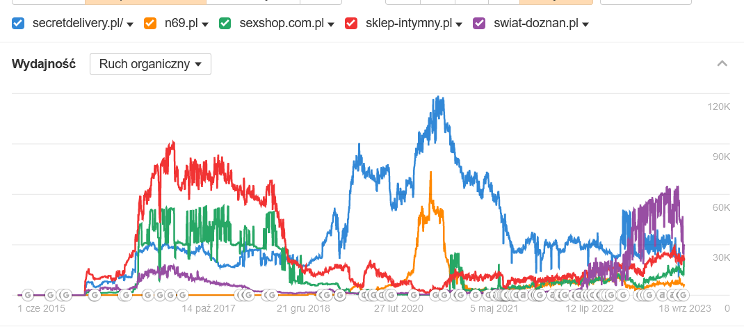 Ciekawostką jest również fakt, że przez kilka ostatnich lat większość sklepów erotycznych nie wyświetlała się nawet na 1. miejscu na swoje własne zapytania brandowe. Przykładem może być chociażby sklep N69, który do września 2023 roku nie zajmował 1. miejsca na nazwę sklepu:
