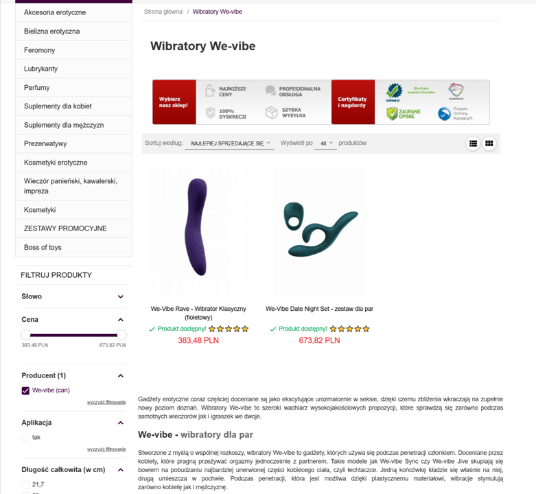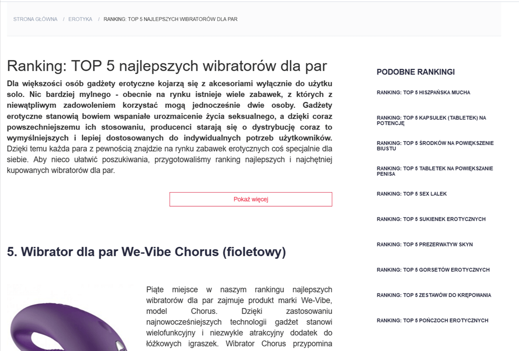 Pod adresem, który zawierał listing wibratorów, opublikowaliśmy samą treść contentową. Tym samym użytkownik trafiający na ten adres nie widział już żadnych produktów ani stron paginacji: