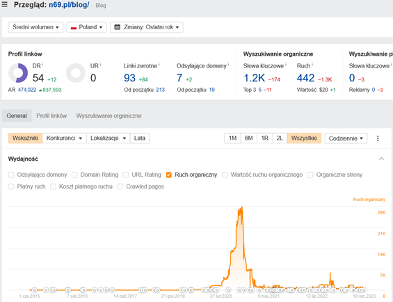 Mając tę wiedzę, postanowiliśmy przenieść blog na zewnętrzną domenę, odcinając go jednocześnie od struktury strony. Co ciekawe, równolegle uruchomiliśmy nowe miejsce z artykułami, całkowicie bez żadnego związku z domeną główną. Na obecnym etapie posiada ono o wiele lepszą widoczność niż ten blog, gdzie przenieśliśmy część treści.