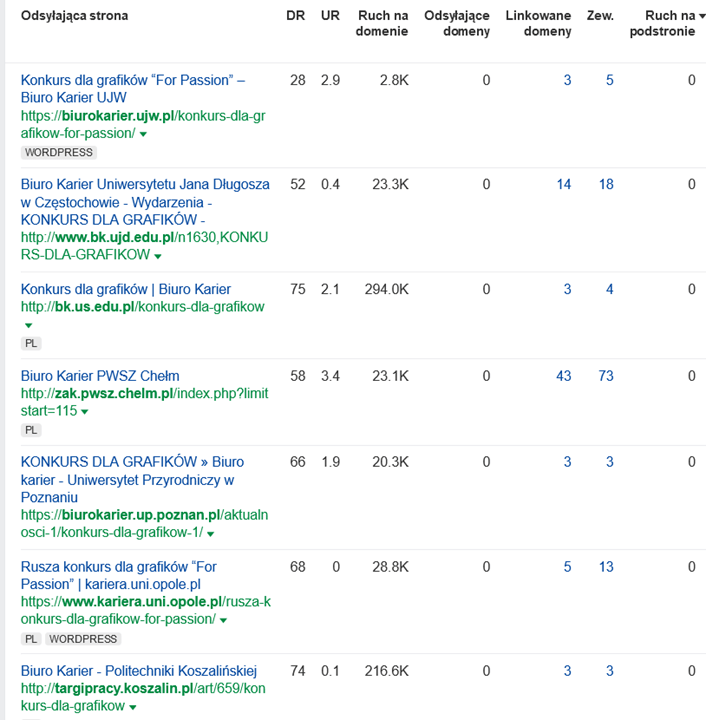 W szczególności linki pochodziły z biur karier uniwersytetów, ale nie tylko: