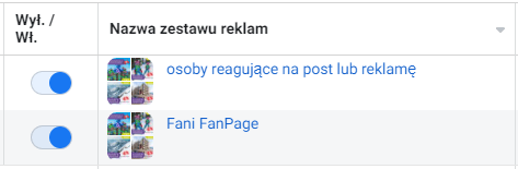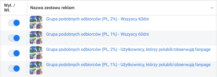 W każdej z widocznych kampanii zastosowaliśmy zestawy reklam zawierające następujących odbiorców: