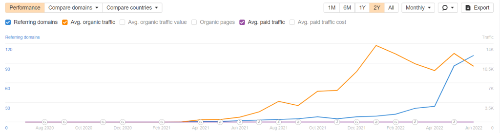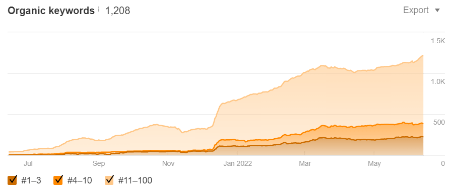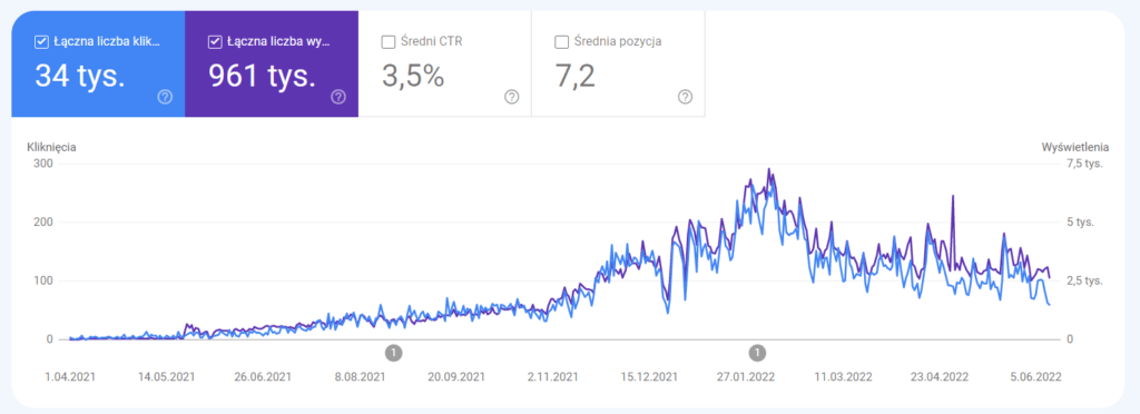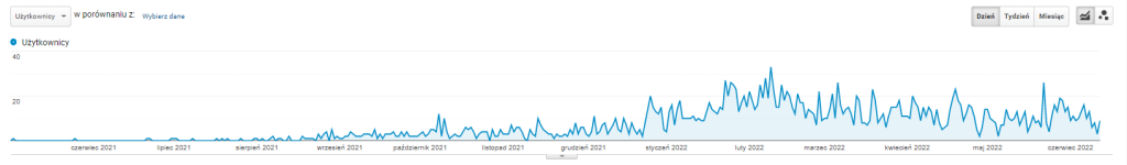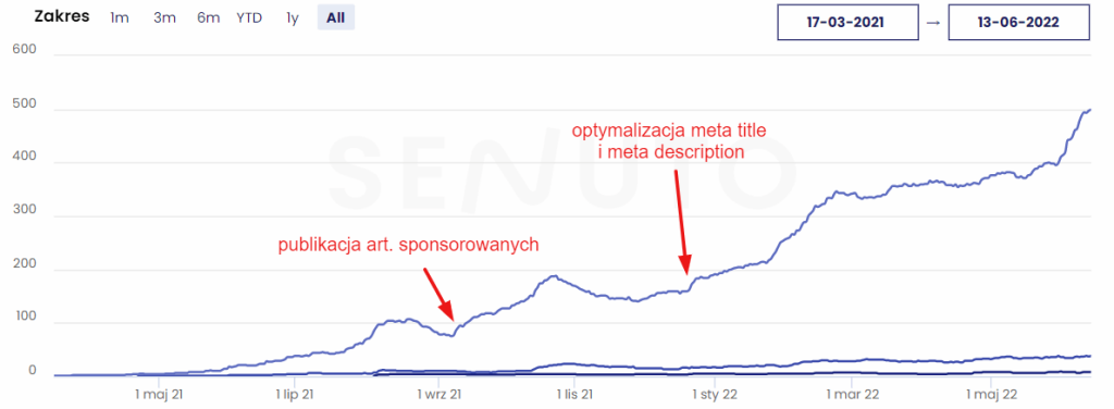 Jak wspominaliśmy, nasza agencja współdziała z klientem od kwietnia 2021 r. i od tego momentu widoczność witryny regularnie rośnie.