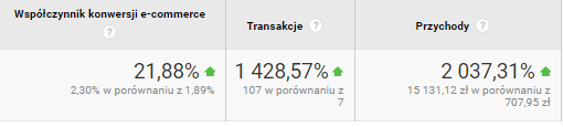 Dzięki temu udało się również zwiększyć sprzedaż w witrynie o ponad 2 000%, co widać na poniższym porównaniu miesiąca.