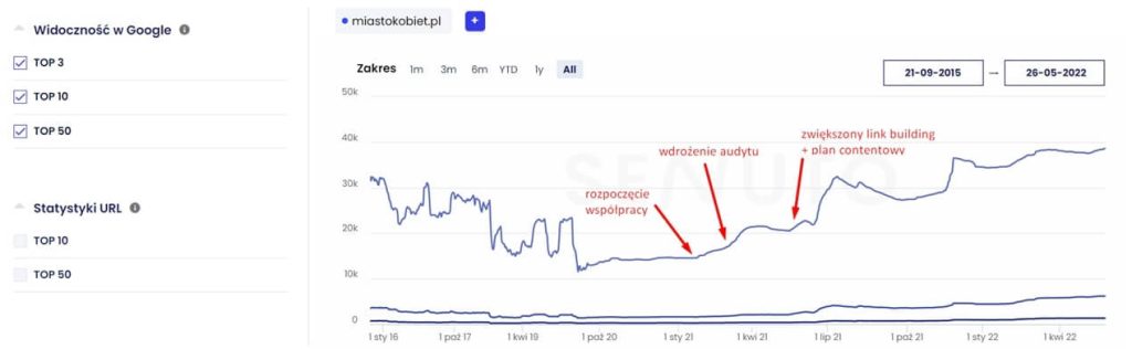Współpracę z klientkami rozpoczęliśmy w lutym 2021 roku i od tego czasu prowadzimy działania w zakresie pozycjonowania portalu.