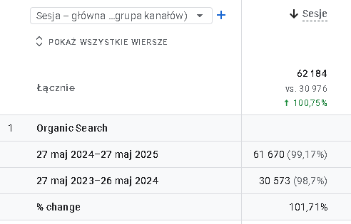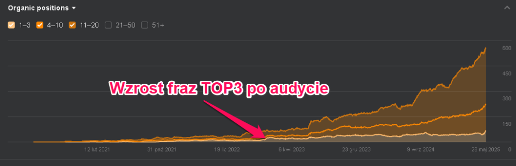 Wdrożenie audytu SEO dało efekty w dość krótkim czasie i było pierwszym krokiem w rozbudowie widoczności domeny.