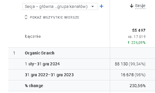 Porównując sam okres roku 2024 z rokiem 2023 udało nam się zwiększyć ilość odwiedzin o 230%: