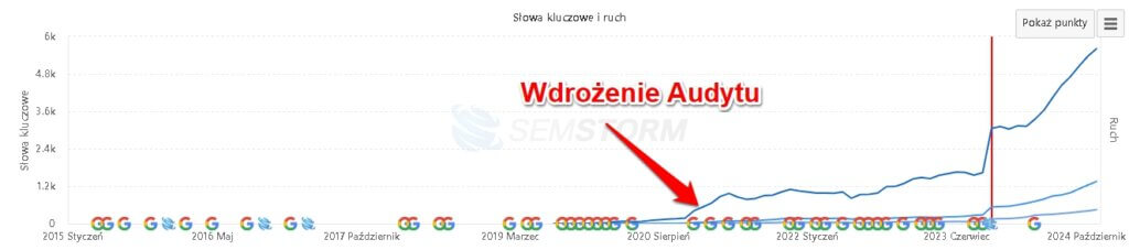 Audyt jest zawsze pierwszym krokiem kiedy rozpoczynamy współpracę. Pozwala nam to na eliminację problemów technicznych oraz zapoznanie się dokładnie z witryną Klienta i jej całym potencjałem. W audycie niwelujemy podstawowe błędy optymalizacyjne takie jak Meta Title, linkowanie wewnętrzne i zewnętrzne, problemy z canonical tags, linkowanie wewnętrzne i zewnętrzne i wiele więcej. Audyt zazwyczaj skutkuje pierwszym skokiem widoczności zależnym od tego, w jakim stanie była domena kiedy do nas trafiła
