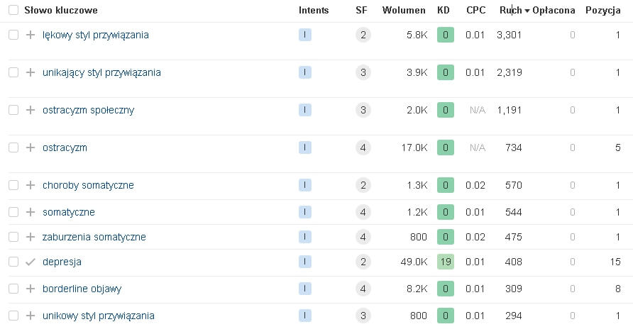 Na powyższym zrzucie ekranu widać jak połączenie strategi link-buildingu wzmacniającego autorytet domeny z odpowiednio stworzonym content planem potrafi wybić nawet bardzo popularne frazy na bardzo wysokie pozycje.