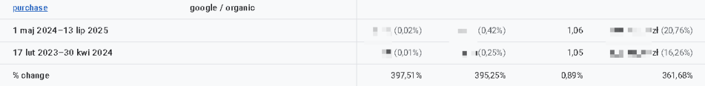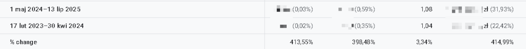 Pośrednim skutkiem tak dużego wzrostu ruchu organicznego jest właśnie wzrost świadomości marki, która z czasem także generuje dodatkowy ruch direct i dodatkową sprzedaż. W okresie naszej współpracy zyski ze sprzedaży w ruchu direct wzrosła o 414%.