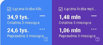 W przeciągu samych ostatnich 3 miesięcy udało nam się zwiększyć widoczność witryny o 39,6%, a liczbę kliknięć o 41,8% w porównaniu do poprzedniego okresu.
