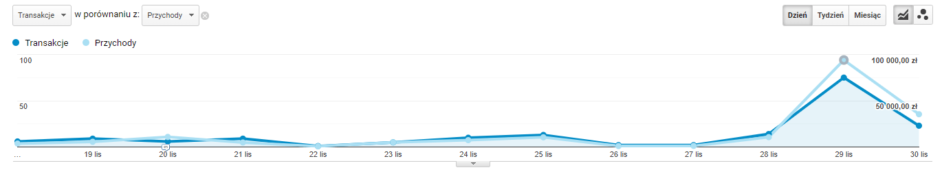 Jak co roku staram się zachęcać klientów, by w miarę możliwości wykorzystali czarnopiątkowy potencjał. Poniżej zaprezentuje kilka wykresów z okolic Czarnego Piątku wraz z omówieniem.
