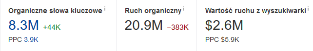 Jest to niewyobrażalna ilość, której dominującą część stanowią wyniki powiązane z nazwami produktów. Jeśli wspomniana wartość do nas nie przemawia, to warto wspomnieć o estymacji Ahrefs szacującej niemal 21 milionów odwiedzin miesięcznie z wyników bezpłatnych Google.