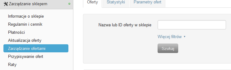 W zaistniałej sytuacji, z pomocą przychodzi nam opcja przypisywania ręcznego ofert dostępna w panelu klienta. W tym celu należy kliknąć w Zarządzanie sklepem, a następnie zarządzanie ofertami.