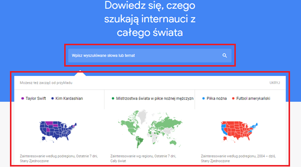 Przyjrzyjmy się bliżej stronie głównej Google Trends.