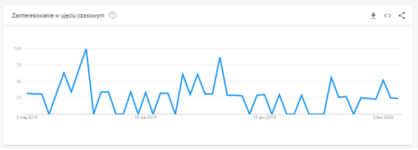 Wykres zainteresowania daną frazą wyświetla się w wybranym przez nas ujęciu czasowym.