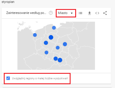 Poniżej możemy także zaznaczyć, aby w prezentowanych danych zawarte były także regiony z małą ilością wyszukiwań.