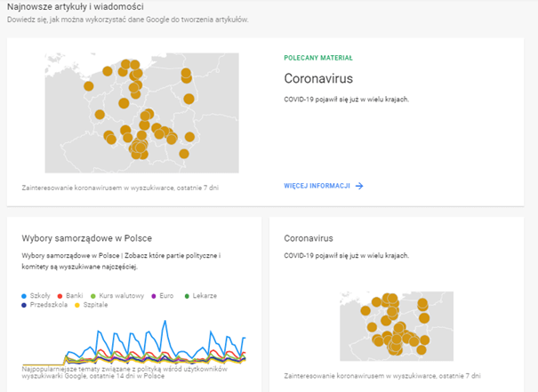 Google Trends to darmowe narzędzie stworzone przez pracowników Google. Pozwala ono analizować trendy panujące w wyszukiwarce. W łatwy sposób możemy sprawdzić, czy temat, który chcemy poruszyć na swojej stronie internetowej, budzi stałe zainteresowanie, czy zyskuje on na popularności w danych okresach.
