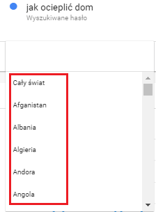 Daną frazę możemy analizować w konkretnym kraju. Wystarczy jedynie wybrać ten, który nas interesuje na liście rozwijanej.