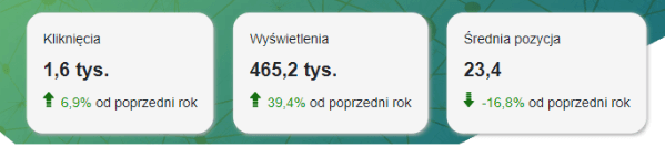 Użytkownicy – liczba użytkowników na stronie z bezpłatnych wyników wyszukiwań z porównaniem do poprzedniego roku (jeśli takie dane były zliczane).