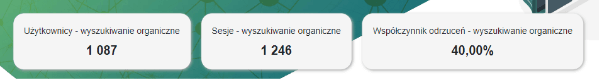 Dane pochodzą z narzędzia Google Analytics i przedstawiają najważniejsze dane analityczne z bezpłatnych wyników wyszukiwań.