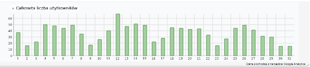 Całkowita liczba użytkowników – liczba użytkowników z podziałem na dni w raportowanym miesiącu.
