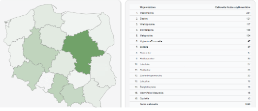 W raporcie znajdują się informacje o lokalizacji użytkowników, z jakich województw trafili na stronę oraz w jakiej liczbie z bezpłatnych wyników wyszukiwania.