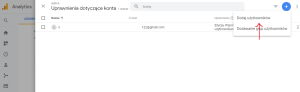 - W kolejnym kroku pojawi się lista, w której zobaczysz nazwę swojego konta wraz z mailem. To znaczy, że na ten moment stroną zarządzasz tylko Ty, by to zmienić wybierz PLUS, w prawym górnym rogu, następnie kliknij w pole „Dodaj użytkowników”