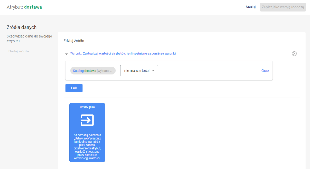- Brak atrybutu dostawy: