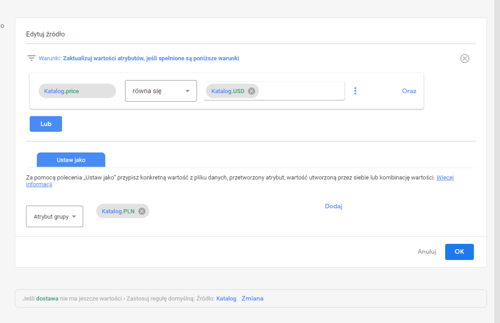 - Klikamy atrybut podrzędny i wybieramy ustawienia tak, aby zgadzało się z informacjami na witrynie i o produktach.