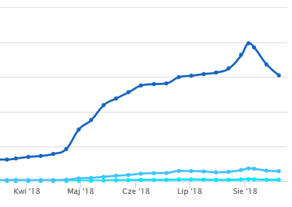 Należy jednak zauważyć, że wynika to ze stopniowego odkrywania zmian pozycji przez Ahrefs.