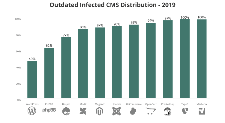 Jedną z najczęstszych przyczyn infekcji na stronach z systemem CMS jest zwlekanie z aktualizacją. Jedynie 44% spośród zainfekowanych stron, miało w chwili infekcji zainstalowaną najnowszą dostępną wersję swojego systemu.