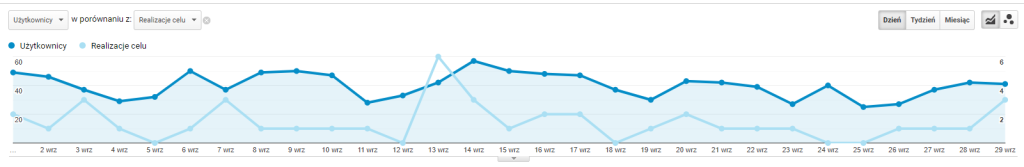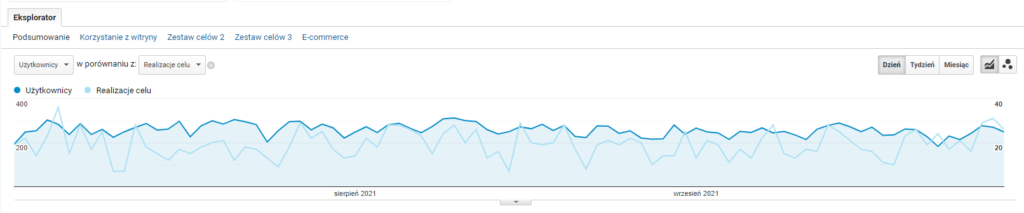 Jak widać na powyższym zrzucie ekranu, ruch pochodzący z bloga jest dla nas wartościowy, ponieważ skupia użytkowników realizujących cele założone przez klienta, jakimi są kliknięcia w numer telefonu, przejście do zakładki kontaktu czy prośba o kontakt.